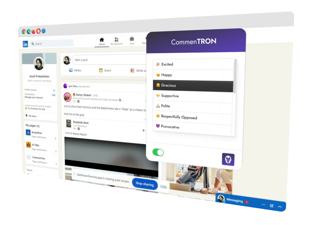 Say goodbye to the struggle of crafting the perfect response. CommenTron uses advanced AI to generate context-aware comments, boosting your engagement and presence on LinkedIn.